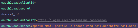 oauth2.aad.scopes = ... Calendars.Read ... << 이런식으로 기입해주고 OAuth로그인을 하면, 해당 인증 정보를 가지고 캘린더 정보를 읽어올 수 있다.